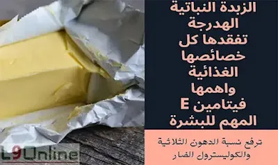الزبدة والسمن النباتي هي عبارة عن زيوت نباتيه يتم تعريضها لذرات الهدروجين لتصبح مشبعة بالدهون، وتتحول للحالة الصلبة، وهذا ما يفقدها كل خصائصها الغذائية واهمها فيتامين E المهم للبشرة.