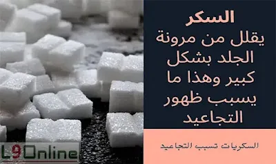 هل السكريات تسبب التجاعيد؟ طبعاً هي من الأطعمة التي تسبب التجاعيد، فإن كنت ترغبين بالمحافظة على بشرتك شابة، والوقاية من التجاعيد، فمن الأفضل أن تقللي أو تتجنبي كل شيء يحتوي على السكر. مثل: مشروبات الطاقة، والعصائر المصنعة، والحلويات، وما إلى ذلك.