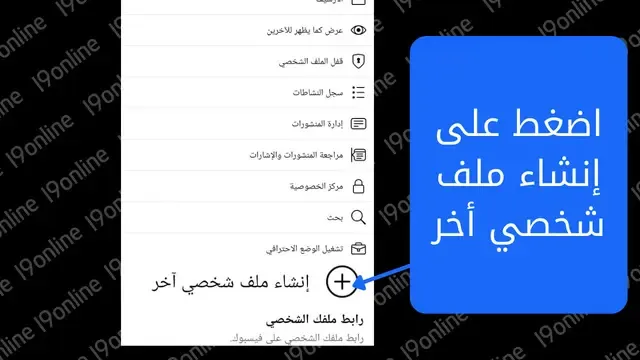 2- أنزل للأسفل وأضغط على إنشاء ملف شخصي آخر في الفيس بوك.