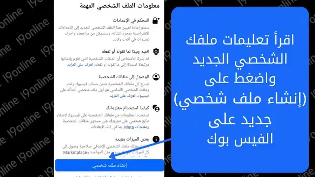 5- اقرأ تفاصيل الملف الشخصي المهمة جيدًا وعند الانتهاء أضغط على (إنشاء ملف شخصي).