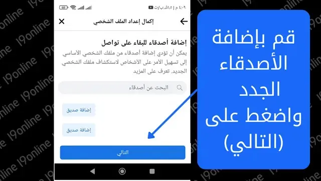 6- اضف الأصدقاء الجدد لتبقى على تشارك معهم، واضغط على زر (التالي).