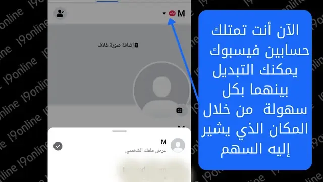 الخطوة السادسة والآخيرة: تم إنشاء حساب فيس بوك بدون رقم هاتف أو إيميل، والآن تستطيع التبديل بين ملفاتك الشخصية بواسطة القائمة المنسدلة بعد الضغط عليها.