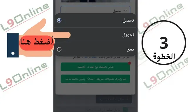 2- اضغط على كلمة (تحميل) سيظهر لك ثلاث خيارات (أنظر الصورة التالية):