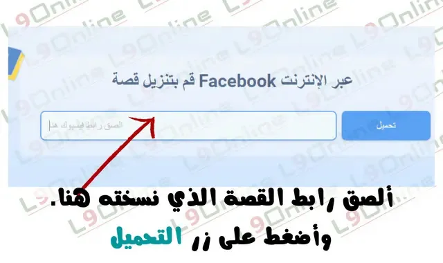 2- اذهب إلى أداةمساعدة تحميل القصص من الفيس بوك من خلال الضغط هناوقم بلصق رابط  فيديو الـ “Stories” واضغط على تحميل.