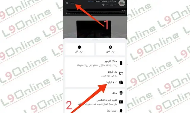 1- انسخ رابط فيديو الفيسبوك الذي تريد تحميلة عن طريق الضغط على الثلاث نقاط الموجودة اعلى يسار الفيديو. أنظر لقطة الشاشة التالية.