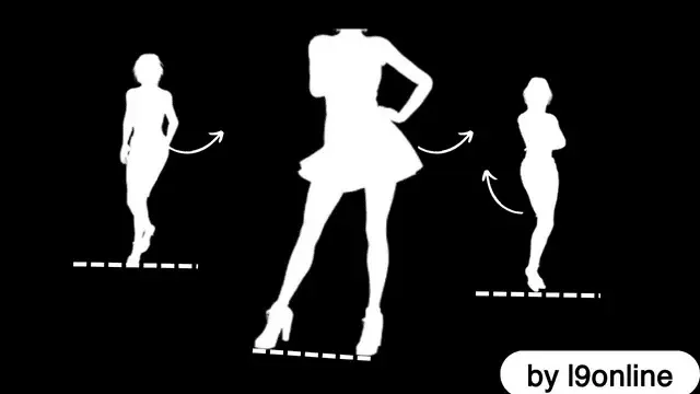 امرأة تمشي وتقوم بإمالة وركها أثناء المشي.
