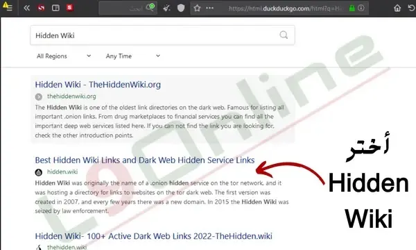 3. من خلال الويكي الخفي (موسوعة روابط وعناوين مواقع الدارك ويب).