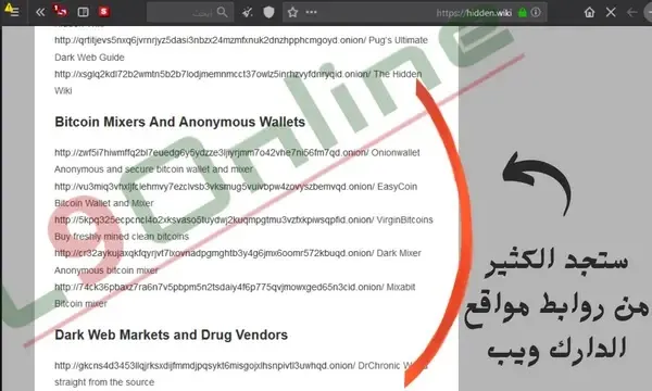 يمكنك استخدامعملي قائمة روابط الإنترنت المظلم هذه من أجل الدخول الى الدارك ويب. فهي عبارة عن موسوعة ودليل شامل يضم أهم مواقع الدارك ويب وأسواقه السوداء. يمكنك نسخ ولصق أي عنوان موقع دارك ويب تريده ولصقه في متصفح TOR. اضغط هنا للذهاب إلى أحدث أدلة الروابط على الويب المظلم.