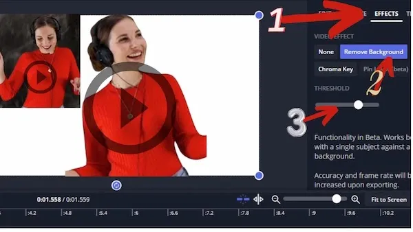 يمكنك إزالة أي خلفية للفيديوهات أون لاين من متصفحك دون الحاجة لتحميل البرامج والإضافات الاخرى. كما يمكنك تجديد خلفية الفيديو لأي شيء تريده، ويمكنك تحصين المؤثرات الصوتية والفيديوهات والصور الموجودة ضمن الأداة.