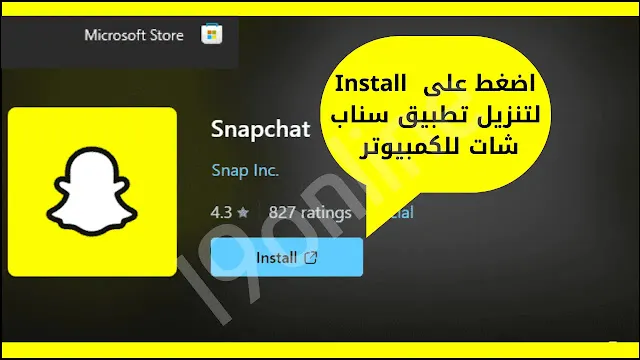 1: حمل تنفيذ سناب شات للكمبيوتر من متجر مايكروسوفت بالضغط هنا. انظر للصورة التوضيحية التالية: