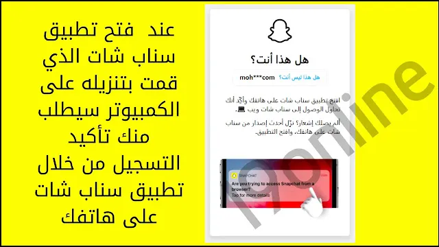 3: سيطلب منك برنامج سناب شات التأكد من أنك أنت من يحاول تسجيل الدخول من على الكمبيوتر. انظر الصورة التوضيحية التالية: