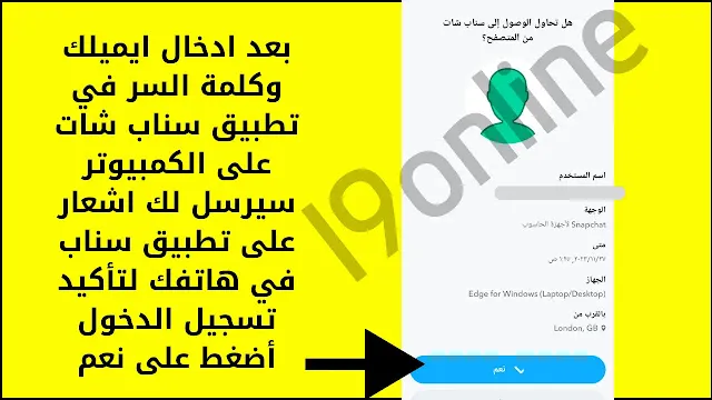 4: افتح تنفيذ سناب شات على هاتفك وقم بالموافقة على إشعار تسجيل الدخول لسنابك على الكمبيوتر. انظر الصورة التوضيحية التالية: