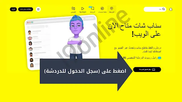 1: أفتح متصفح Chrome أو Edge من على جهاز الكمبيوتر واذهب إلى موقع سناب شات ويب بالضغط هنا. أنظر الصورة التالية للتوضيح لفتح سناب شات على المتصفح.